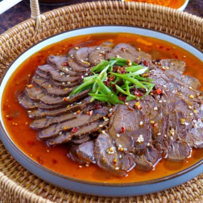 (Roasted Duck,BBQ Pork, Scallops, Squid, Straw Mushrooms, Peas, Chinese Beef with Gravy Sauce)
